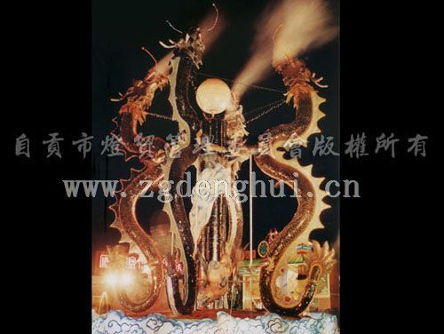 高10米,占地面积40平方米,四条龙分别用蓝色、金色、银色、茶色镀膜玻璃制成,五彩斑斓,蔚为壮观