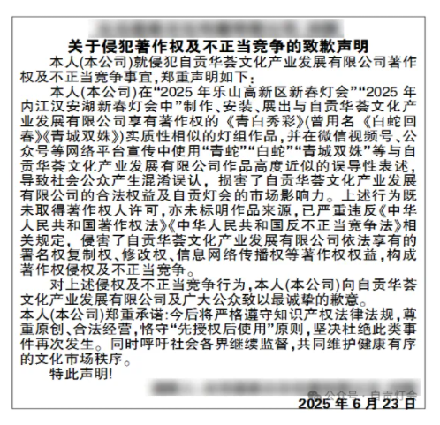 然而,原创成果的保护面临严峻挑战。抄袭、模仿等侵权行为,不仅是对创作者劳动成果的粗暴掠夺,更是对文化创新生态的严重破坏:面对外界的借鉴与潜在的侵权行为,自贡灯会始终坚守原创初心,以坚定的姿态捍卫彩灯文化的尊严。知识产权是文化创新的基石,只有保护好它,才能确保自贡灯会的持续繁荣与发展。为此,我们已建立完善的知识产权保护机制,对任何形式的抄袭行为保持高度警觉,并采取一切必要措施予以反制。
