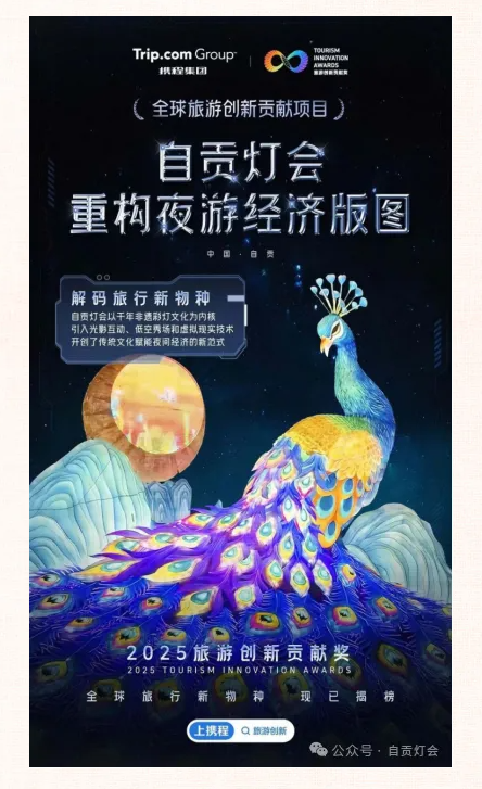 自贡灯会以千年非遗彩灯为核心,融入光影互动、低空秀场和虚拟现实等前沿科技,成功开创了传统文化赋能夜间经济的新模式。凭借这一创新实践,它从全球100个入围项目中胜出,摘得“2025旅游创新贡献奖”。这一荣誉不仅是对自贡灯会的高度肯定,更是对其创新突破的有力背书,为其塑造国际化品牌搭建了展示成果、交流经验的优质平台。